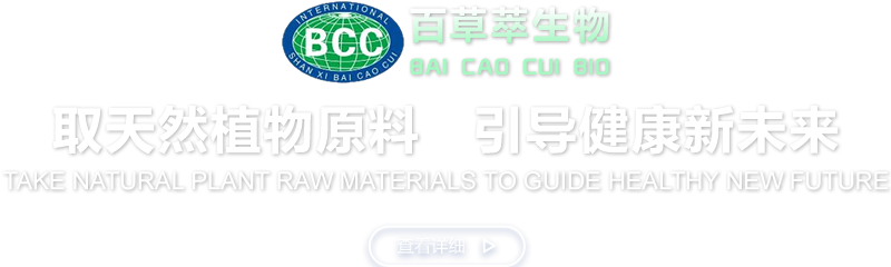 陜西百草萃生物科技有限公司,位于陜西省咸陽市秦都區濱河西路1號大秦御港城,公司成立于1996年,主要從事天然植物種植、研發、生產、加工、銷售為一體的高科技企業。主營醫藥原料、保健品原料、化妝品原料,精細化工原料。公司致力于人類健康保護事業“ 以科技為動力,以質量求生存” 的本質,依托陜西高新科技技術人才和科研優勢,已形成多學科、全方位、高層次的技術管理精英團隊。充分利用秦巴山區的天然藥物資源,歷經多年發展為打造百草萃生物品牌奠定了基礎。